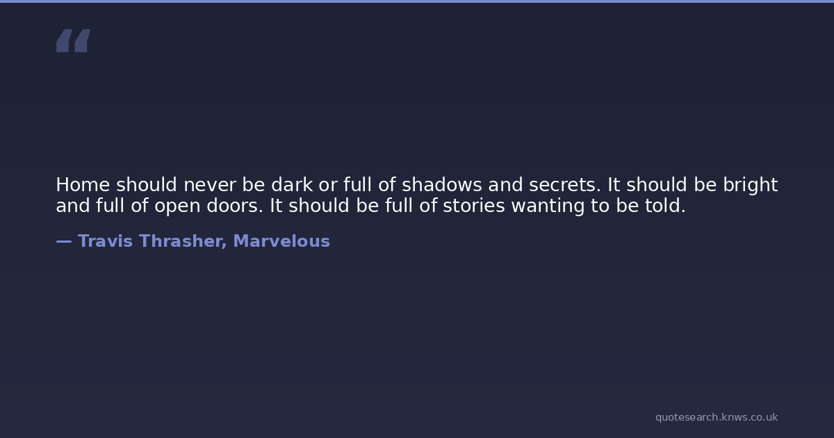 Home should never be dark or full of shadows and secrets. It should be bright and full of open doors. It should be full of stories wanting to be told.