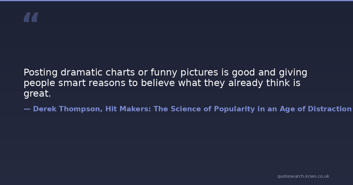 Posting dramatic charts or funny pictures is good and giving people smart reasons to believe what they already think is great.
