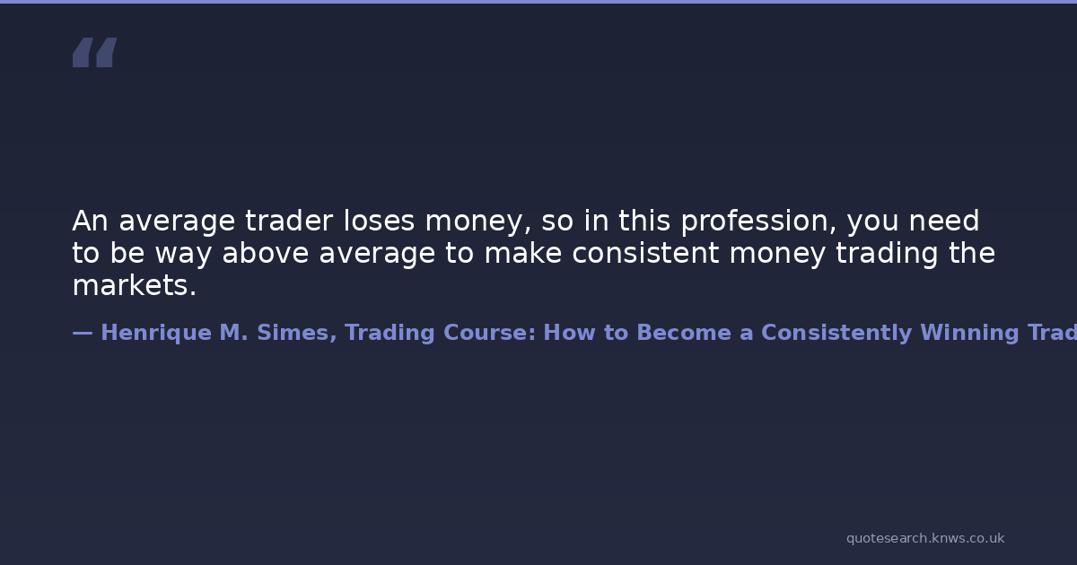 An average trader loses money, so in this profession, you need to be way above average to make consistent money trading the markets.