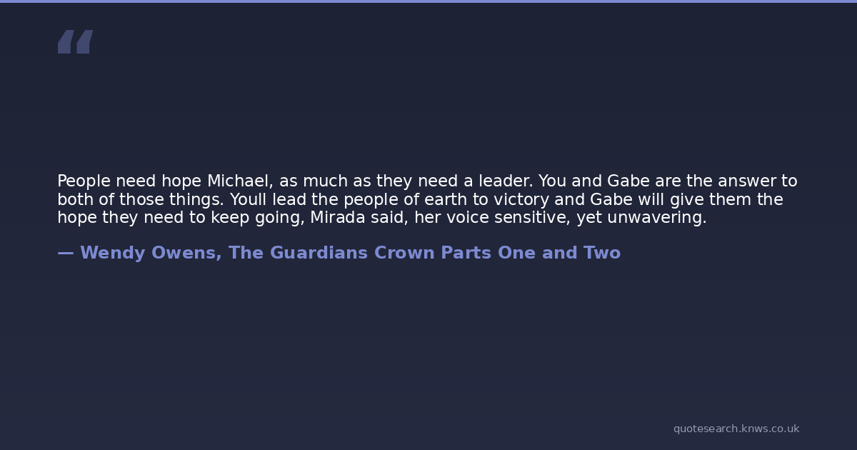 People need hope Michael, as much as they need a leader. You and Gabe are the answer to both of those things. Youll lead the people of earth to victory and Gabe will give them the hope they need to keep going, Mirada said, her voice sensitive, yet unwavering.