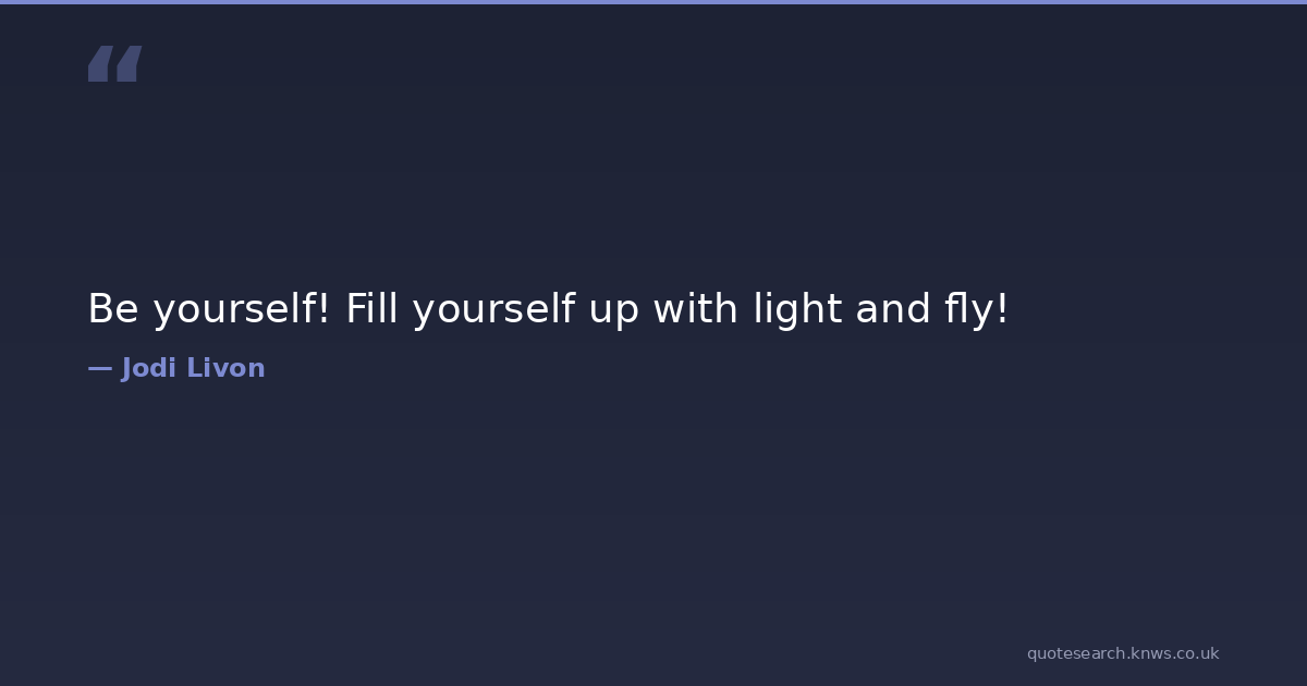 Be yourself! Fill yourself up with light and fly! affirmations business inspirational-quotes intuition jodi-livon love medium mystic surviving-quotes the-happy-medium wisdom Download Image Share on X Share on Facebook Copy Link