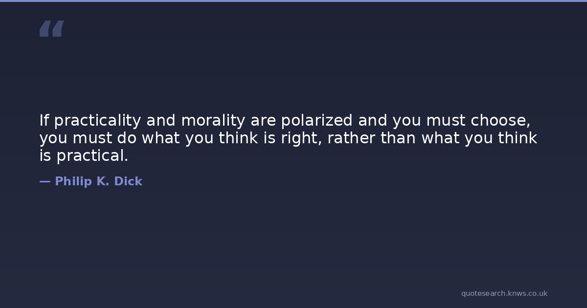 If practicality and morality are polarized and you must choose, you must do what you think is right, rather than what you think is practical.