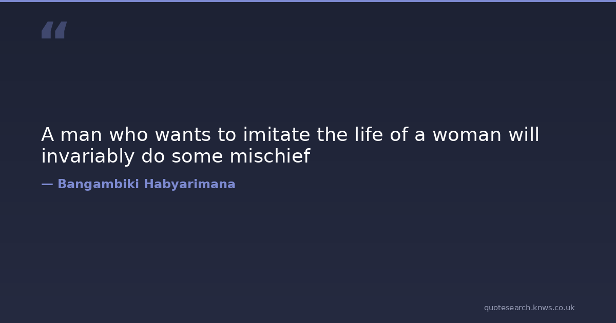 A man who wants to imitate the life of a woman will invariably do some mischief