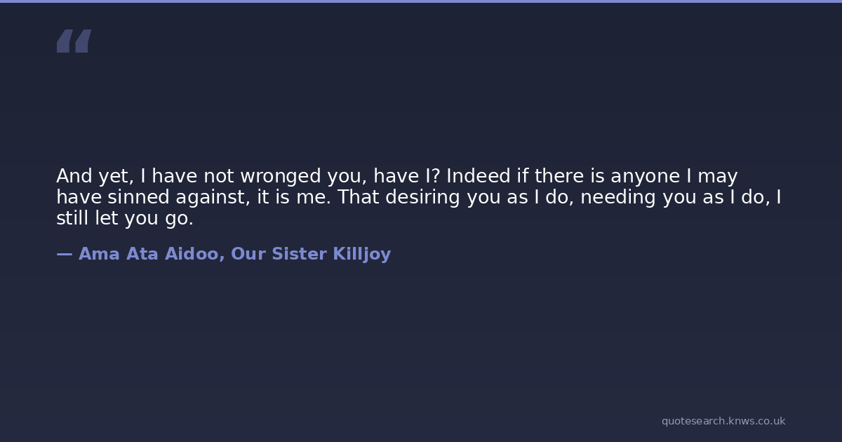 And yet, I have not wronged you, have I? Indeed if there is anyone I may have sinned against, it is me. That desiring you as I do, needing you as I do, I still let you go.