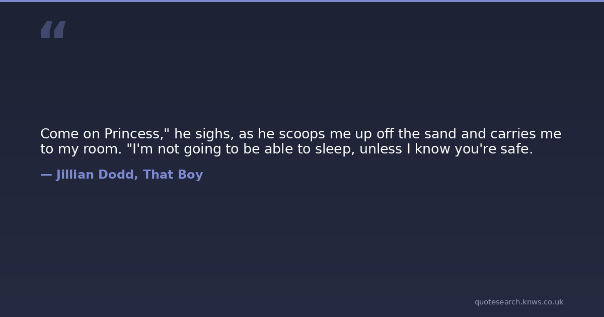 Come on Princess," he sighs, as he scoops me up off the sand and carries me to my room. "I'm not going to be able to sleep, unless I know you're safe.