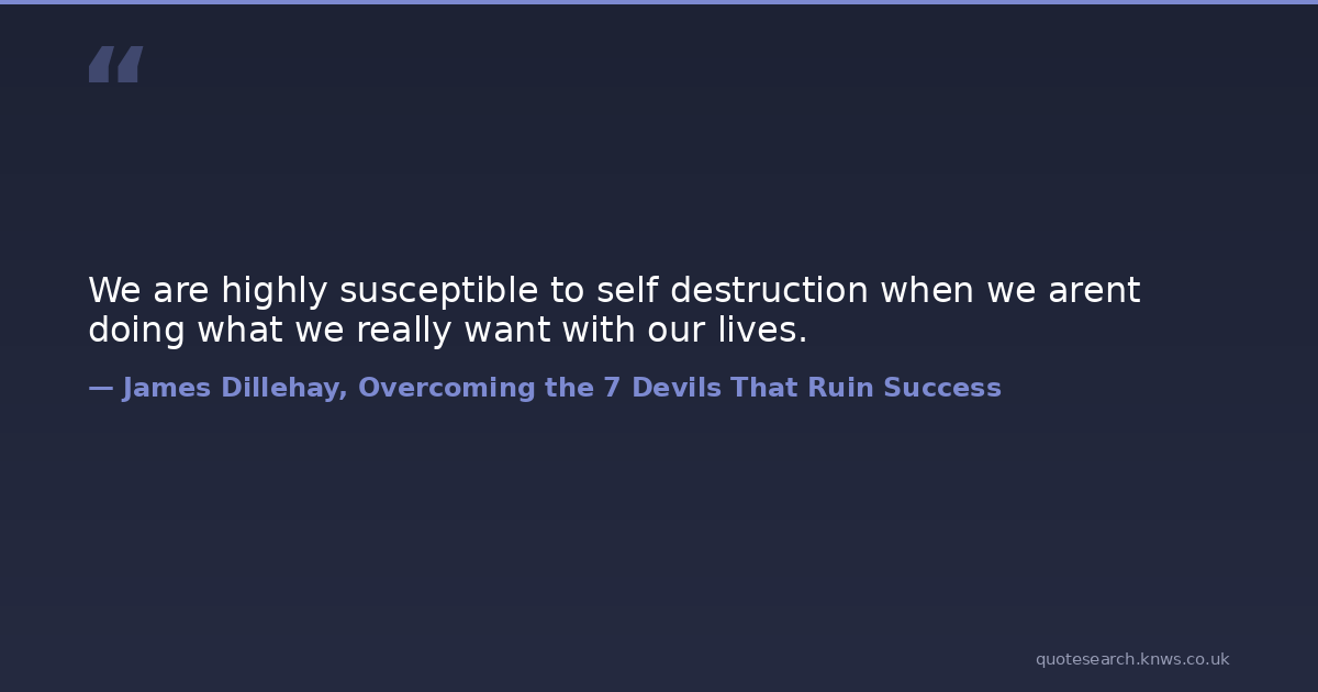 We are highly susceptible to self destruction when we arent doing what we really want with our lives.