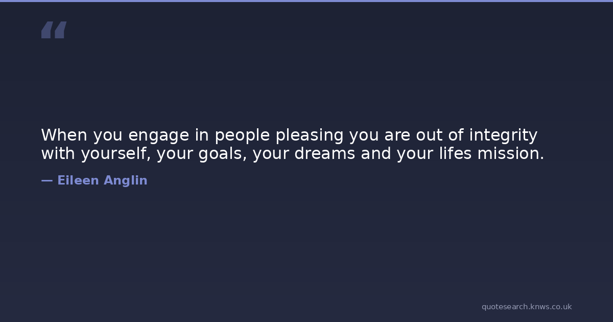 When you engage in people pleasing you are out of integrity with yourself, your goals, your dreams and your lifes mission.