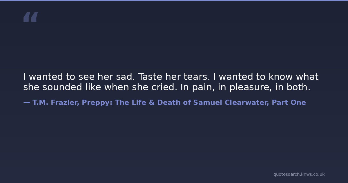 I wanted to see her sad. Taste her tears. I wanted to know what she sounded like when she cried. In pain, in pleasure, in both.