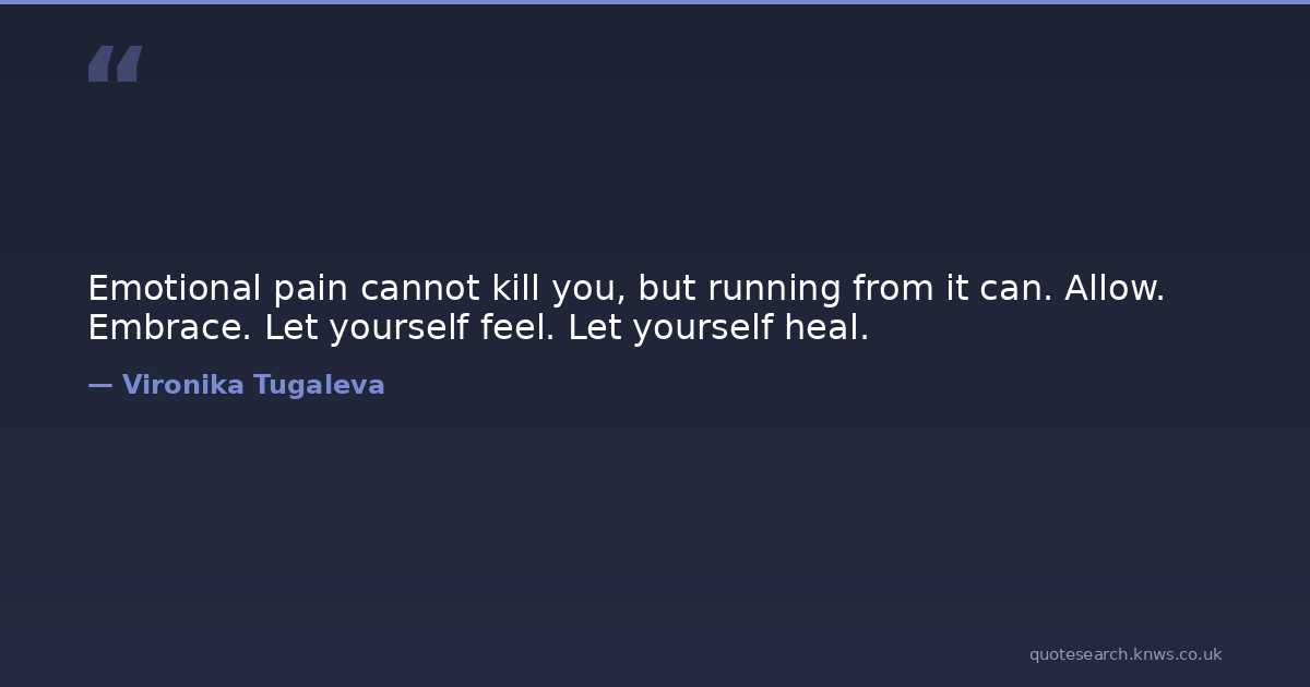Emotional pain cannot kill you, but running from it can. Allow. Embrace. Let yourself feel. Let yourself heal.