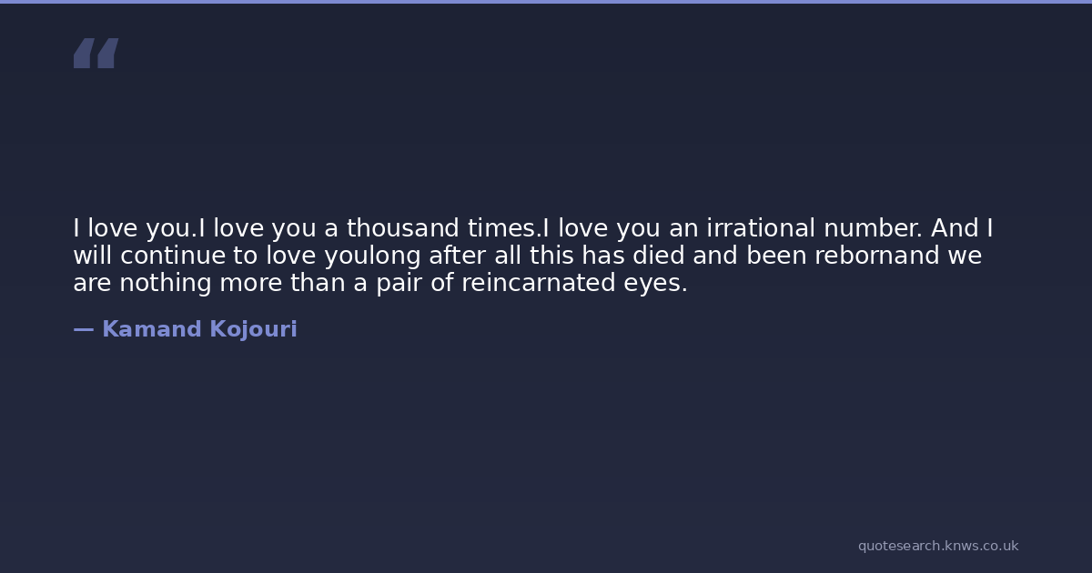 I love you.I love you a thousand times.I love you an irrational number. And I will continue to love youlong after all this has died and been rebornand we are nothing more than a pair of reincarnated eyes.