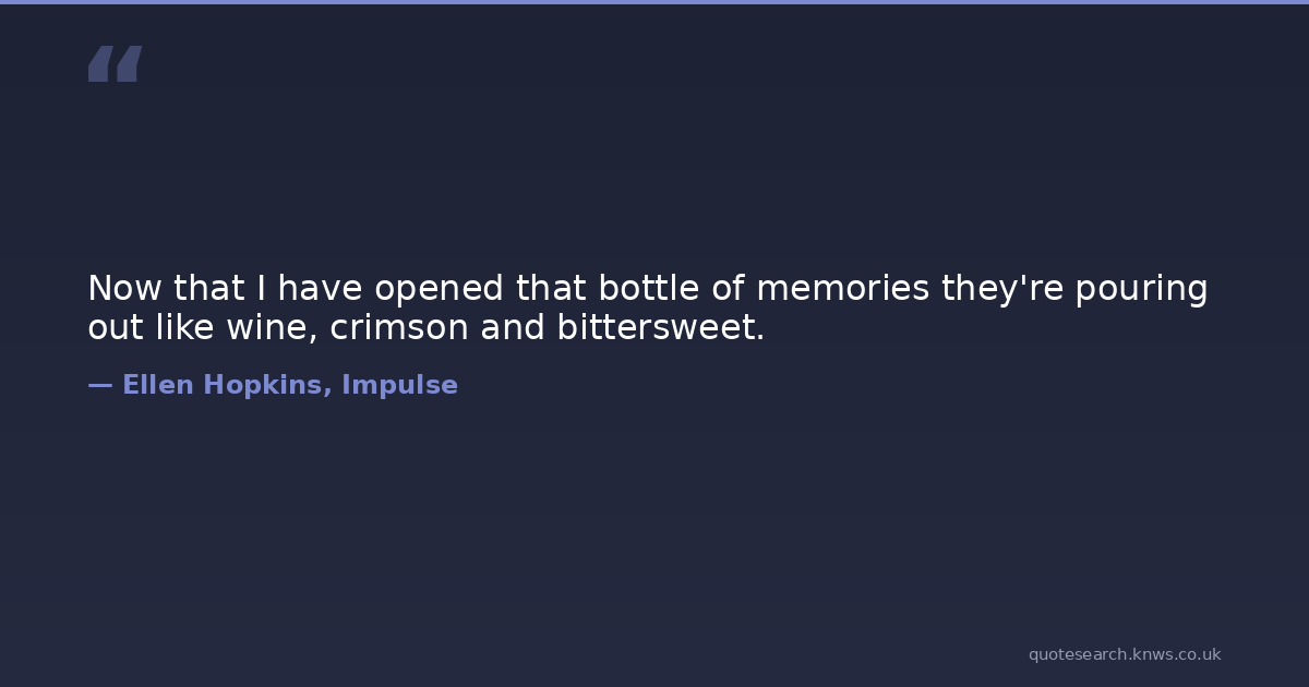 Now that I have opened that bottle of memories they're pouring out like wine, crimson and bittersweet.