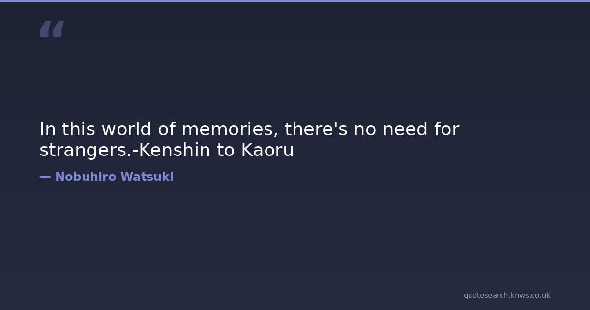 In this world of memories, there's no need for strangers.-Kenshin to Kaoru