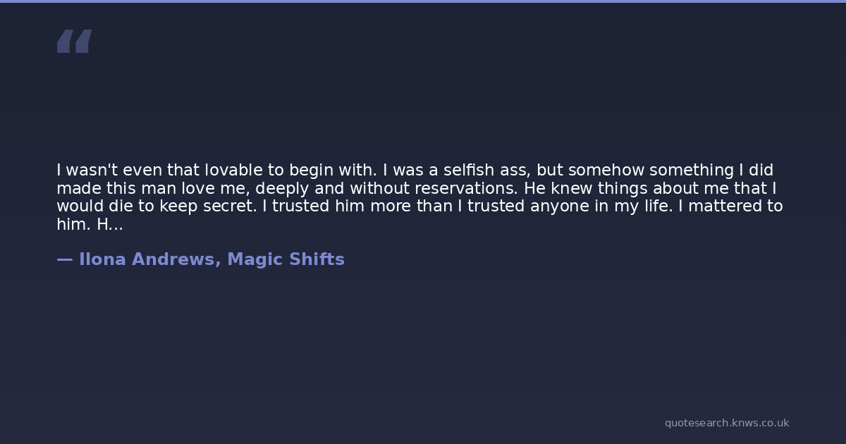 I wasn't even that lovable to begin with. I was a selfish ass, but somehow something I did made this man love me, deeply and without reservations. He knew things about me that I would die to keep secret. I trusted him more than I trusted anyone in my life. I mattered to him. He was suffering and I wanted it to stop. I wanted to see him happy. I loved him so much.