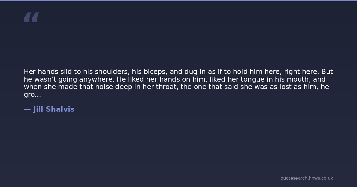 Her hands slid to his shoulders, his biceps, and dug in as if to hold him here, right here. But he wasn't going anywhere. He liked her hands on him, liked her tongue in his mouth, and when she made that noise deep in her throat, the one that said she was as lost as him, he groaned, both in pleasure and with a good amount of what-the-fuckery, because he knew.He was in trouble. Down to the bone trouble, and he didn't give one single shit.