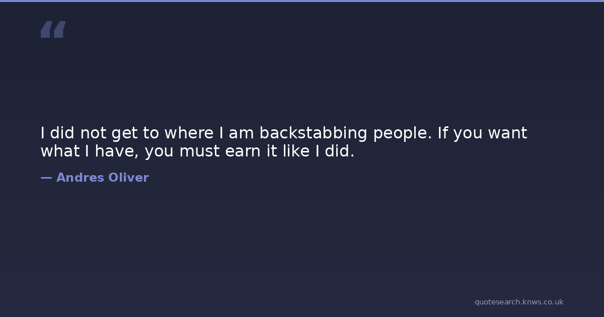 I did not get to where I am backstabbing people. If you want what I have, you must earn it like I did.