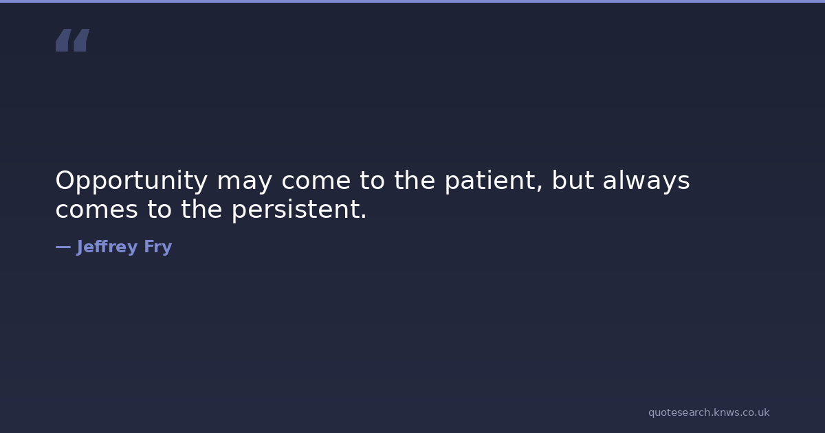 Opportunity may come to the patient, but always comes to the persistent. comes opportunity patient persistent Download Image Share on X Share on Facebook Copy Link