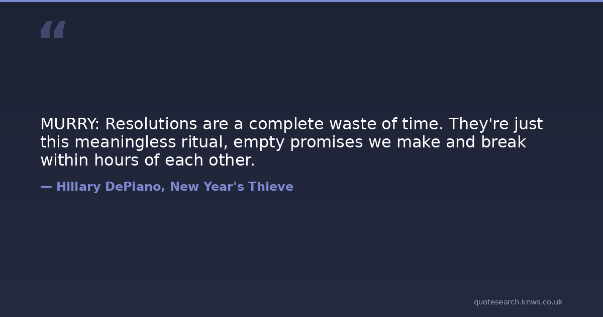 MURRY: Resolutions are a complete waste of time. They're just this meaningless ritual, empty promises we make and break within hours of each other.