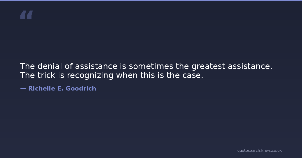 The denial of assistance is sometimes the greatest assistance. The trick is recognizing when this is the case.