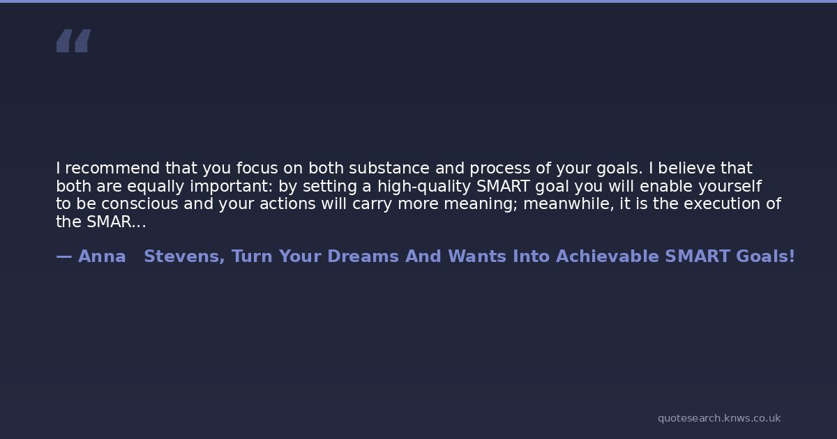 I recommend that you focus on both substance and process of your goals. I believe that both are equally important: by setting a high-quality SMART goal you will enable yourself to be conscious and your actions will carry more meaning; meanwhile, it is the execution of the SMART goals strategy that separates achievers from the rest of the people.