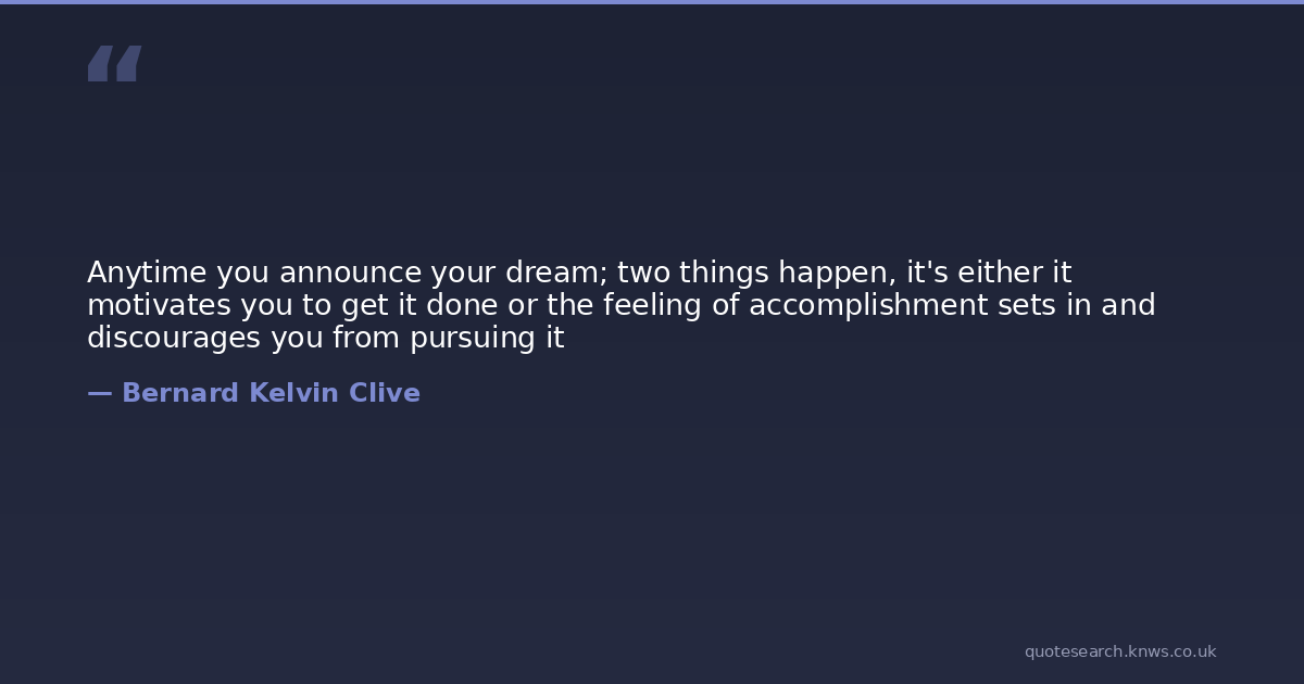 Anytime you announce your dream; two things happen, it's either it motivates you to get it done or the feeling of accomplishment sets in and discourages you from pursuing it