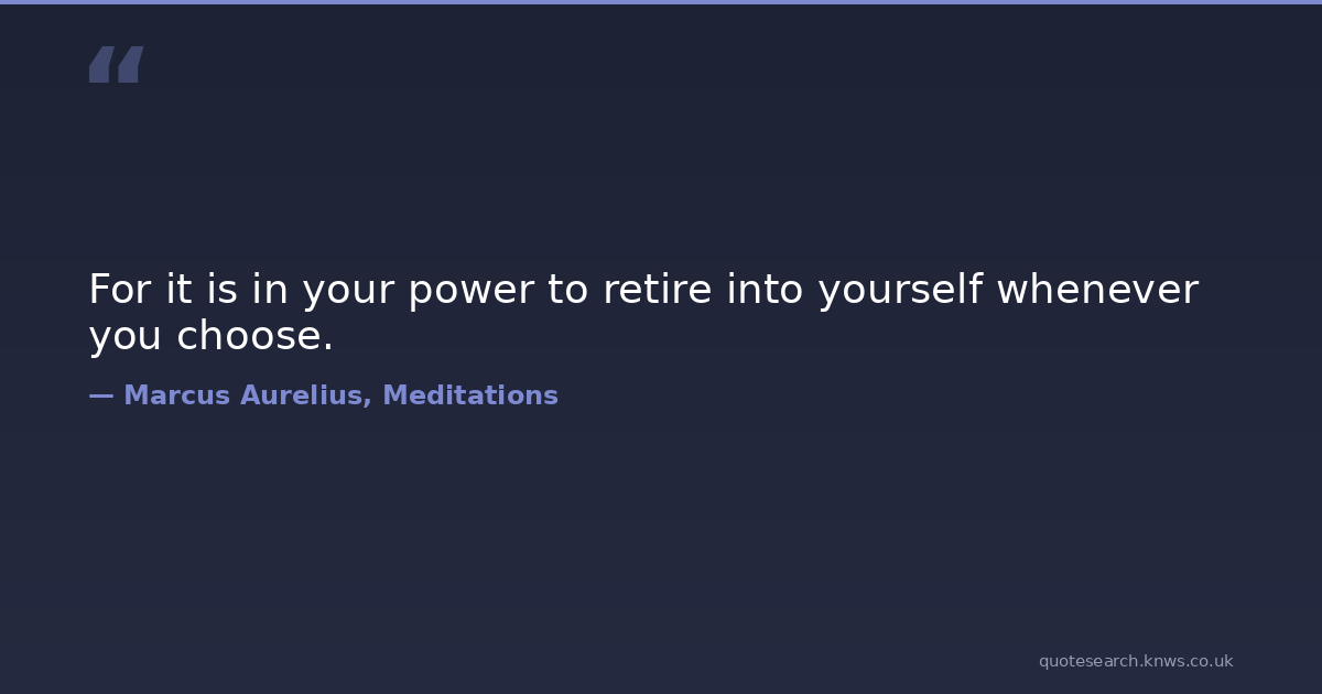 For it is in your power to retire into yourself whenever you choose. ataraxy independence individuality retire self self-assurance self-awareness self-containment self-determination self-esteem self-reliance self-respect self-sufficiency self-trust solitude Download Image Share on X Share on Facebook Copy Link