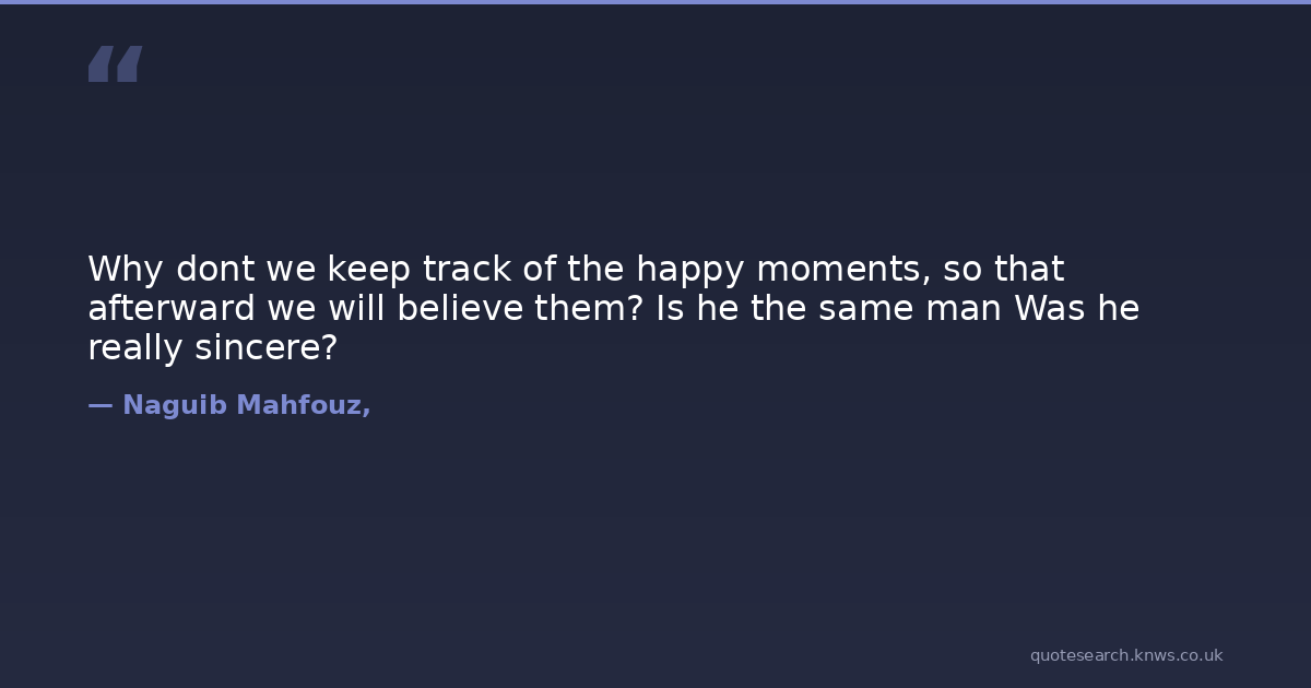 Why dont we keep track of the happy moments, so that afterward we will believe them? Is he the same man Was he really sincere?