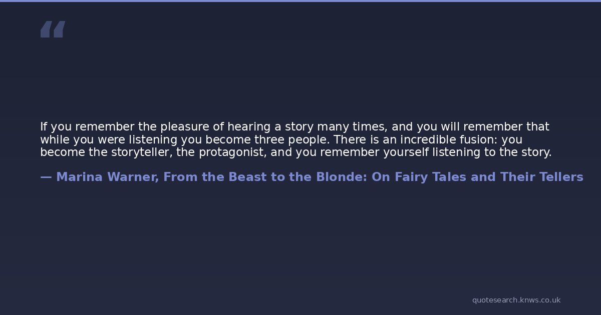 If you remember the pleasure of hearing a story many times, and you will remember that while you were listening you become three people. There is an incredible fusion: you become the storyteller, the protagonist, and you remember yourself listening to the story.
