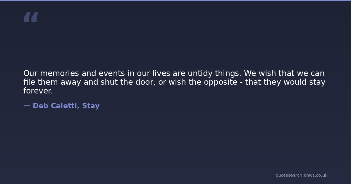 Our memories and events in our lives are untidy things. We wish that we can file them away and shut the door, or wish the opposite - that they would stay forever.