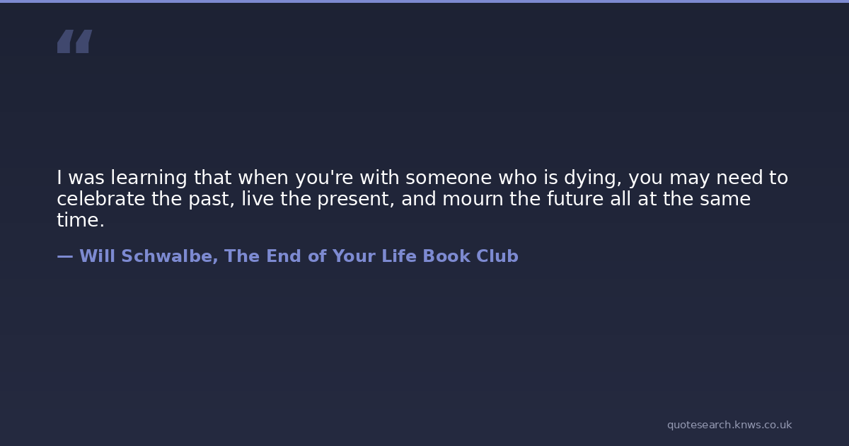 I was learning that when you're with someone who is dying, you may need to celebrate the past, live the present, and mourn the future all at the same time.
