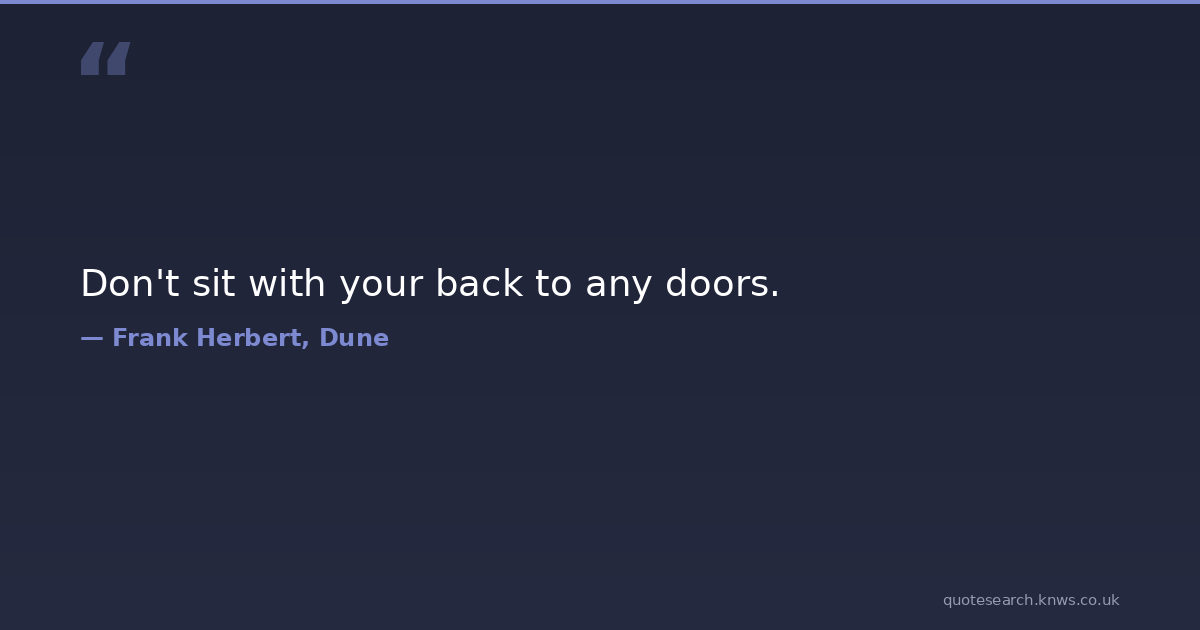 Don't sit with your back to any doors. opportunity Download Image Share on X Share on Facebook Copy Link