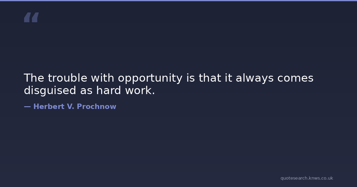 The trouble with opportunity is that it always comes disguised as hard work. disguised hard-work opportunity trouble Download Image Share on X Share on Facebook Copy Link