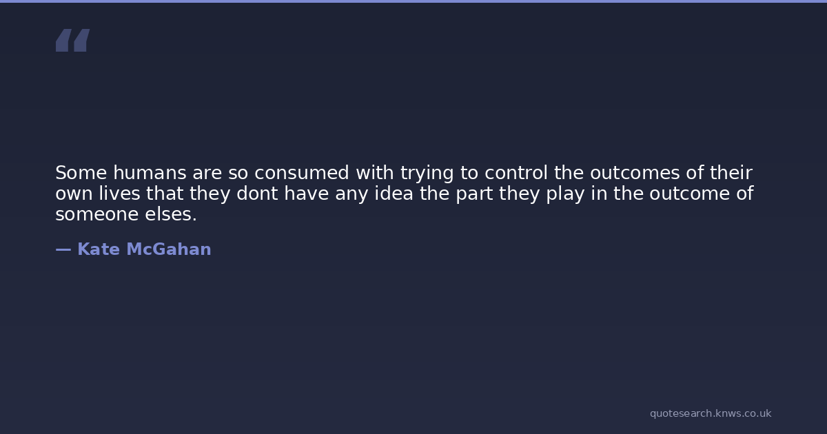 Some humans are so consumed with trying to control the outcomes of their own lives that they dont have any idea the part they play in the outcome of someone elses.
