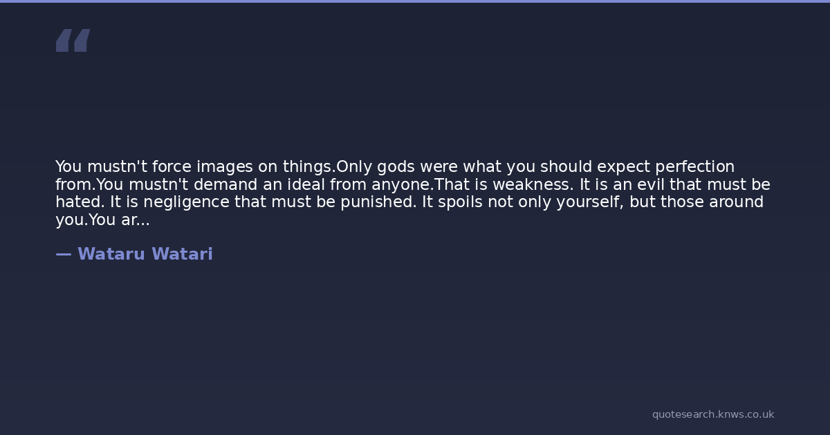 You mustn't force images on things.Only gods were what you should expect perfection from.You mustn't demand an ideal from anyone.That is weakness. It is an evil that must be hated. It is negligence that must be punished. It spoils not only yourself, but those around you.You are allowed to be disappointed with only yourself. You should hurt only yourself. Hate yourself for not following your ideal.The only one you must not forgive is yourself.