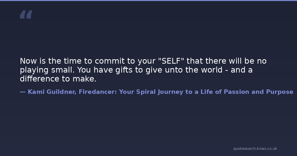 Now is the time to commit to your "SELF" that there will be no playing small. You have gifts to give unto the world - and a difference to make.