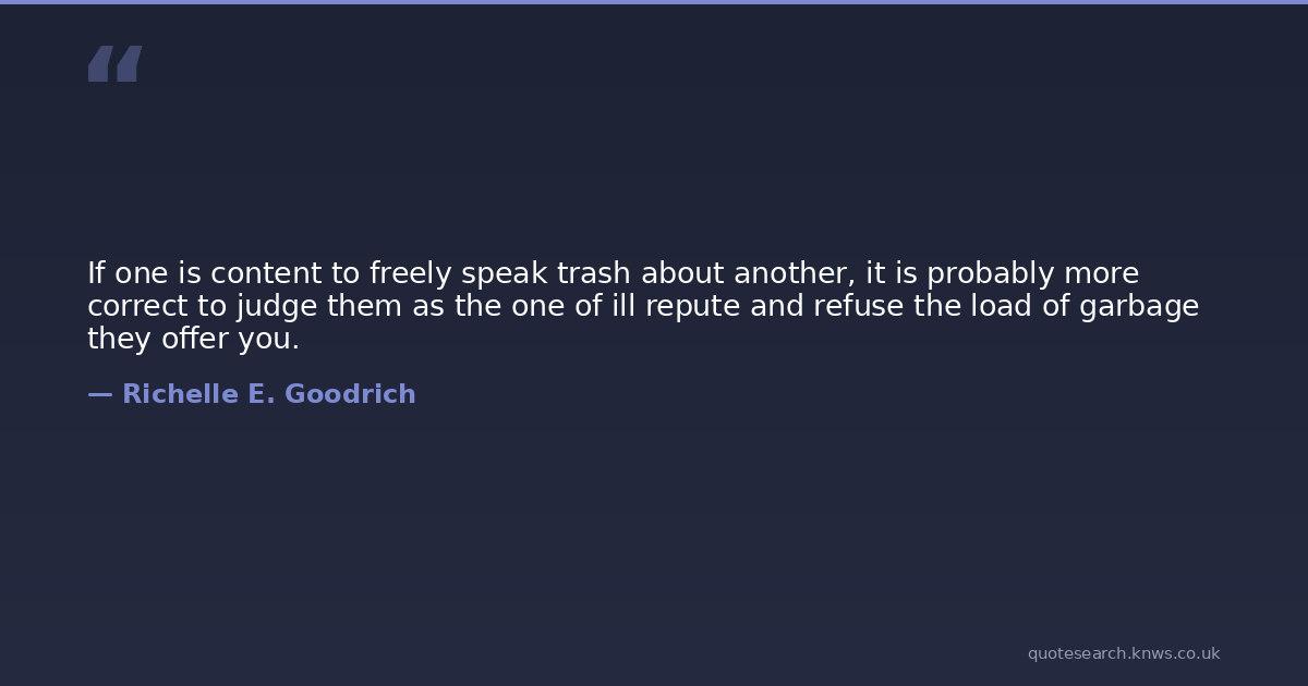 If one is content to freely speak trash about another, it is probably more correct to judge them as the one of ill repute and refuse the load of garbage they offer you.