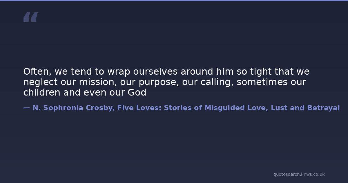 Often, we tend to wrap ourselves around him so tight that we neglect our mission, our purpose, our calling, sometimes our children and even our God