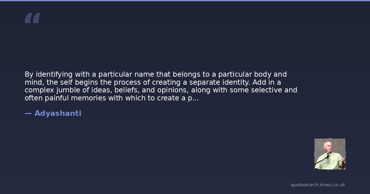 By identifying with a particular name that belongs to a particular body and mind, the self begins the process of creating a separate identity. Add in a complex jumble of ideas, beliefs, and opinions, along with some selective and often painful memories with which to create a past to identify with, as well as the raw emotional energy to hold it all together, and before you know it, you've got a very convincing - though divided - self.