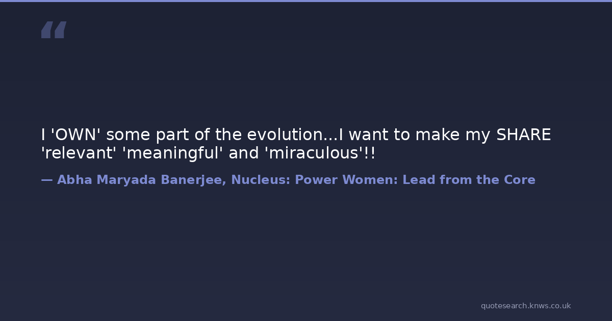 I 'OWN' some part of the evolution...I want to make my SHARE 'relevant' 'meaningful' and 'miraculous'!!