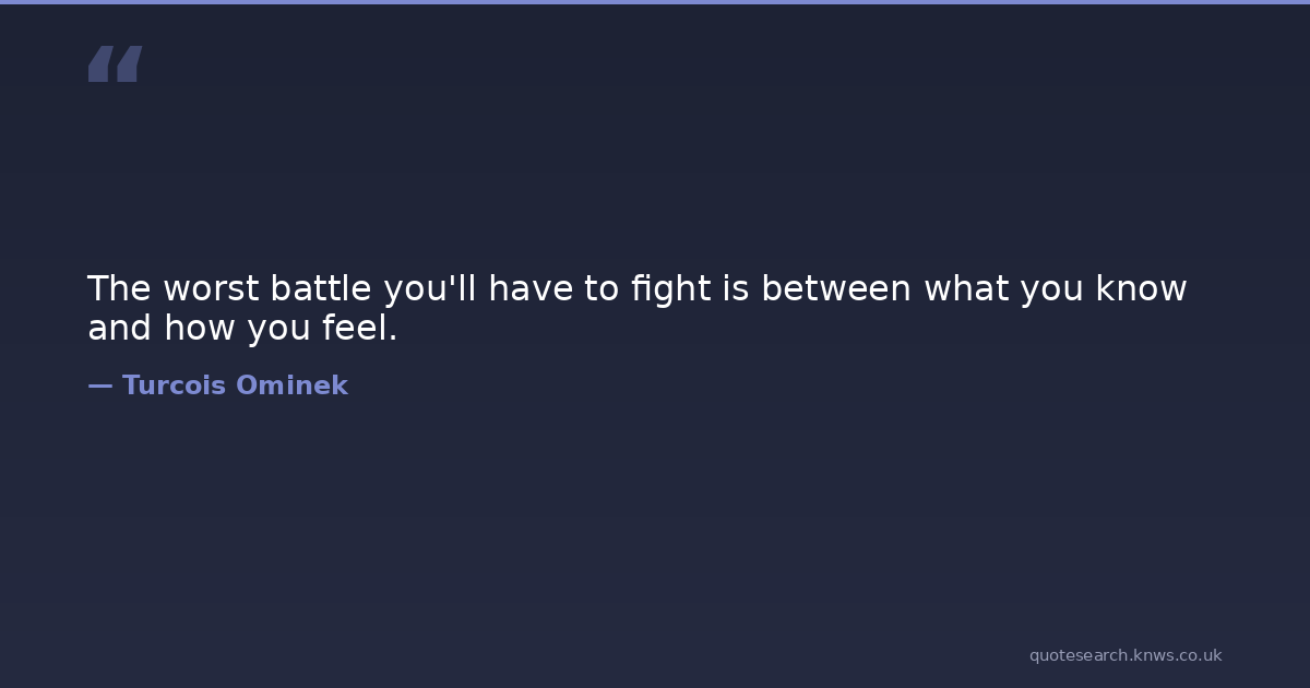 The worst battle you'll have to fight is between what you know and how you feel. conflict feelings love reflection self self-awareness truth Download Image Share on X Share on Facebook Copy Link