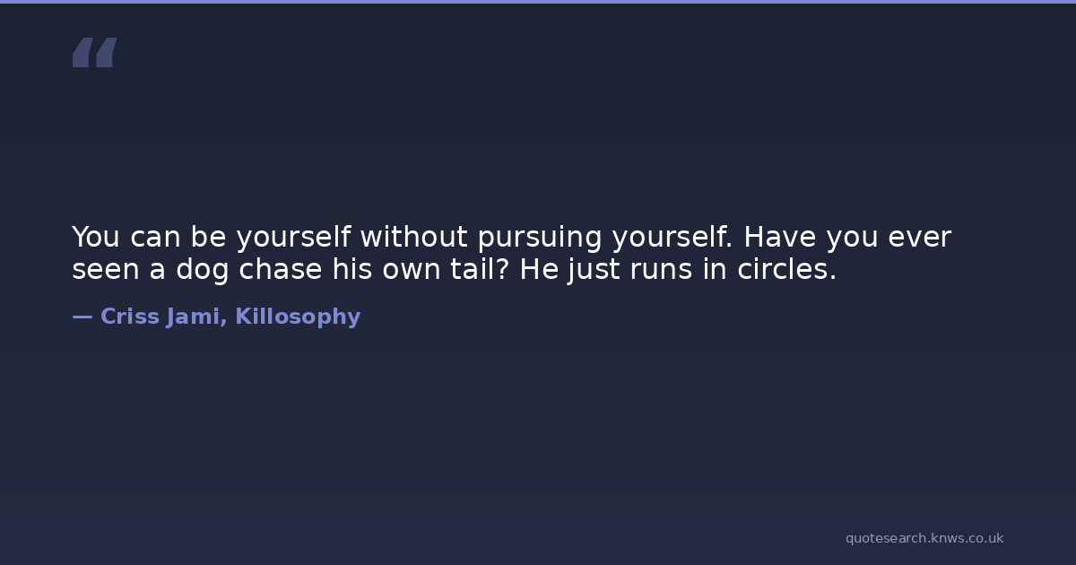 You can be yourself without pursuing yourself. Have you ever seen a dog chase his own tail? He just runs in circles.