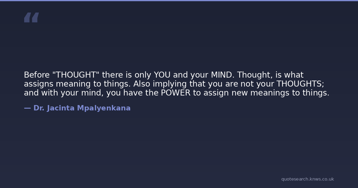 Before "THOUGHT" there is only YOU and your MIND. Thought, is what assigns meaning to things. Also implying that you are not your THOUGHTS; and with your mind, you have the POWER to assign new meanings to things.