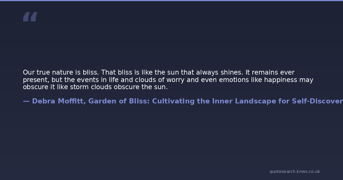 Our true nature is bliss. That bliss is like the sun that always shines. It remains ever present, but the events in life and clouds of worry and even emotions like happiness may obscure it like storm clouds obscure the sun.