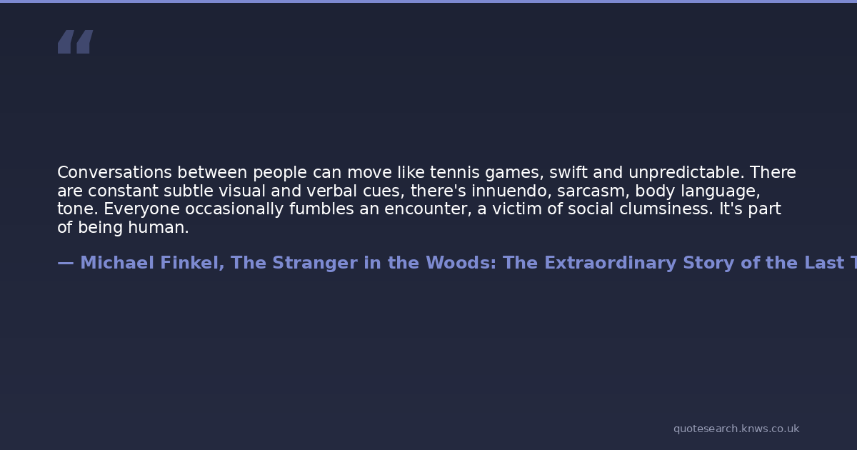 Conversations between people can move like tennis games, swift and unpredictable. There are constant subtle visual and verbal cues, there's innuendo, sarcasm, body language, tone. Everyone occasionally fumbles an encounter, a victim of social clumsiness. It's part of being human.