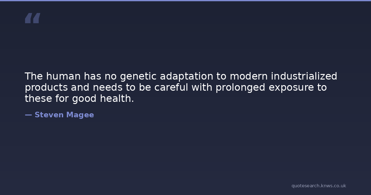 The human has no genetic adaptation to modern industrialized products and needs to be careful with prolonged exposure to these for good health.