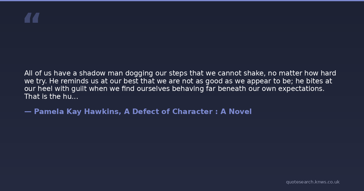 All of us have a shadow man dogging our steps that we cannot shake, no matter how hard we try. He reminds us at our best that we are not as good as we appear to be; he bites at our heel with guilt when we find ourselves behaving far beneath our own expectations. That is the human condition. That is why we yearn so for redemption.