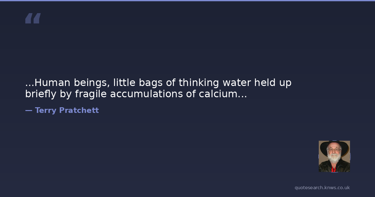 ...Human beings, little bags of thinking water held up briefly by fragile accumulations of calcium...