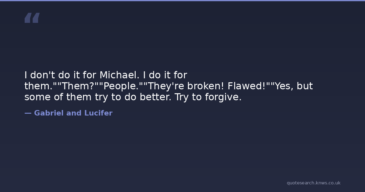 I don't do it for Michael. I do it for them.""Them?""People.""They're broken! Flawed!""Yes, but some of them try to do better. Try to forgive.