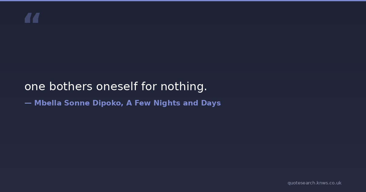 one bothers oneself for nothing.