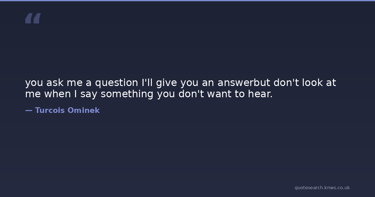you ask me a question I'll give you an answerbut don't look at me when I say something you don't want to hear.