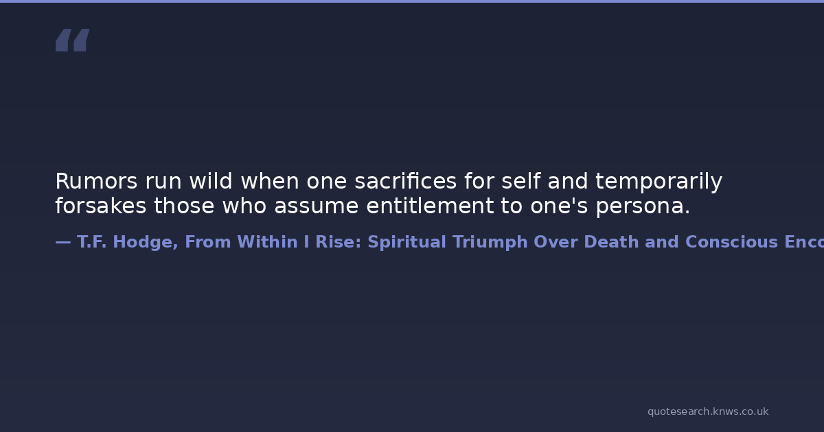 Rumors run wild when one sacrifices for self and temporarily forsakes those who assume entitlement to one's persona.